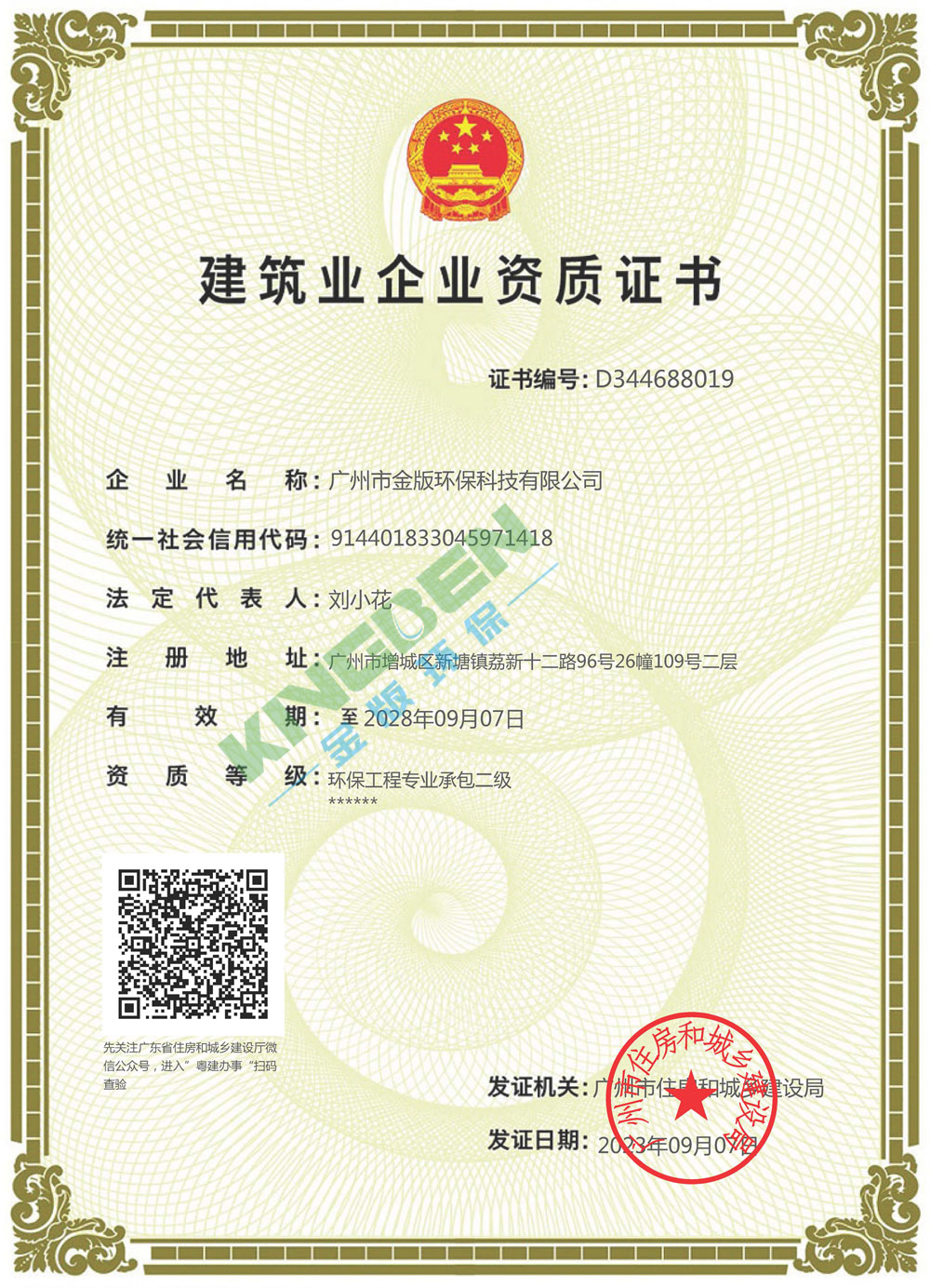 建筑業(yè)環(huán)保工程二級資質證書