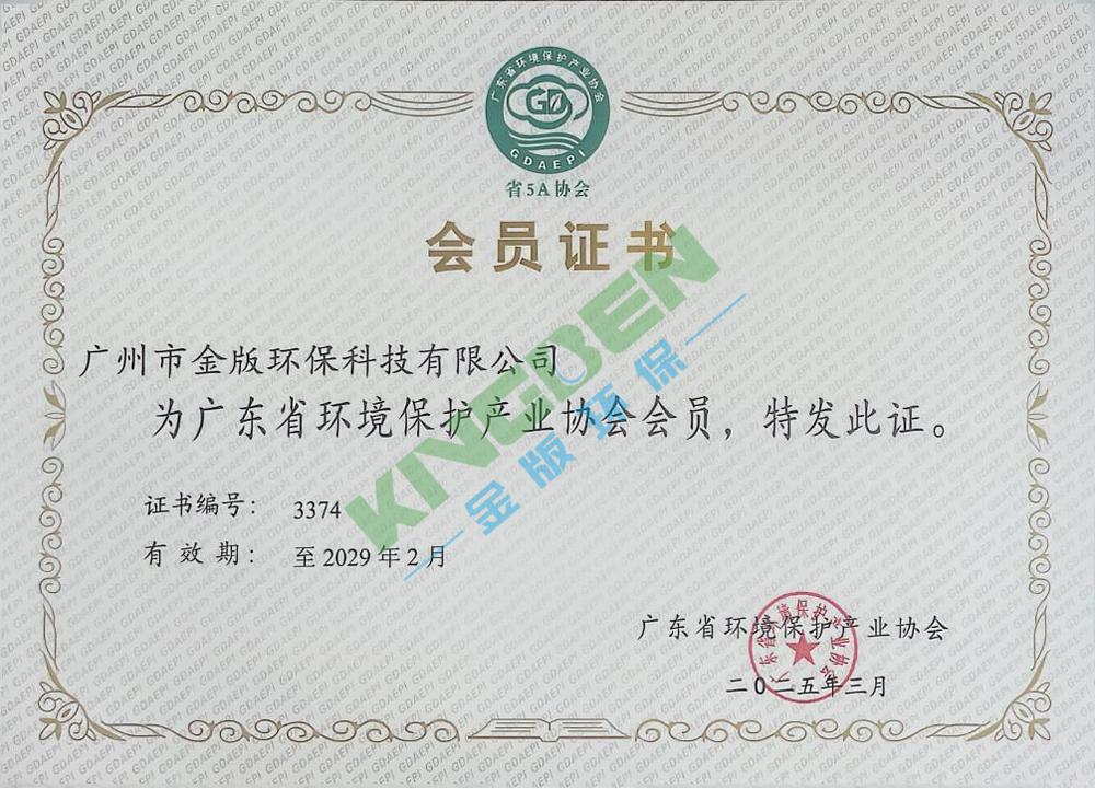 廣東省環(huán)境保護產(chǎn)業(yè)協(xié)會會員證書