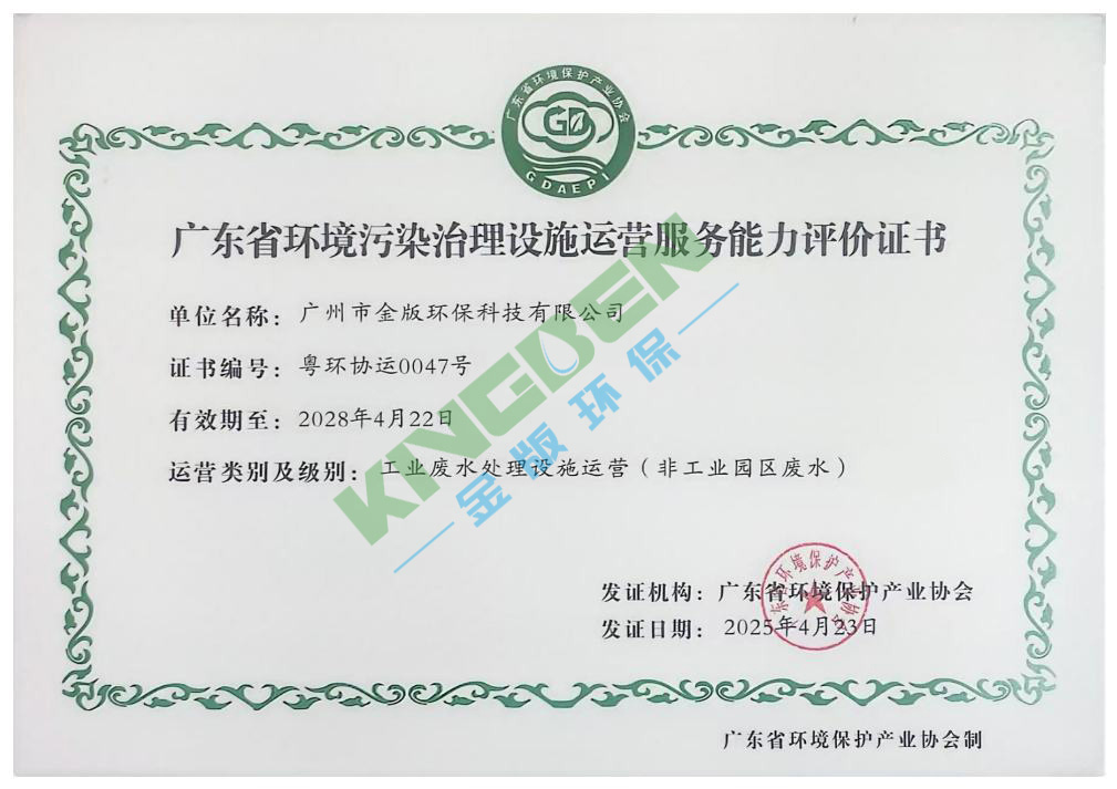 廣東省環(huán)境污染治理設(shè)施運營服務(wù)能力評價證書