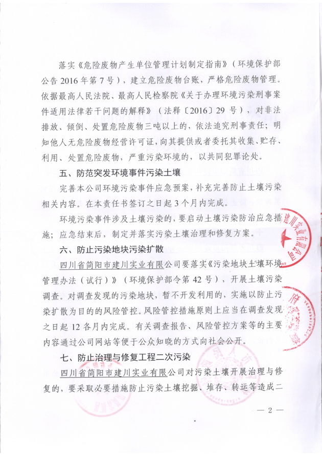 四川省簡陽市建川實(shí)業(yè)有限公司土壤污染防治責(zé)任書