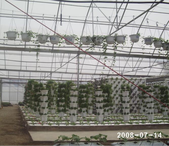 所謂有機(jī)生態(tài)型無土栽培技術(shù)是指不用天然土壤,而使用基質(zhì),不用傳統(tǒng)的營養(yǎng)液灌溉植物根系,而使用有機(jī)固態(tài)肥并直接用清水灌溉作物的一種無土栽培技術(shù)。有機(jī)生態(tài)型無土栽培設(shè)施系統(tǒng),由栽培槽和供水系統(tǒng)兩部分構(gòu)成。在實(shí)際生產(chǎn)中栽培槽用木板、磚塊或土坯壘成高15-20厘米、寬48厘米的邊框,在槽底鋪一層聚乙烯塑料膜??晒┰耘鄡尚凶魑?。槽長視棚室建筑形狀而定,一般為5-30米。供水系統(tǒng)可使用自來水基礎(chǔ)設(shè)施,主管道采用金屬管,滴灌管使用塑料管鋪設(shè)。有機(jī)生態(tài)型基質(zhì)可就地取材,如農(nóng)作物秸桿、農(nóng)產(chǎn)品加工后的廢棄物,木材加工的副產(chǎn)品等都可按一定比例混合使用。